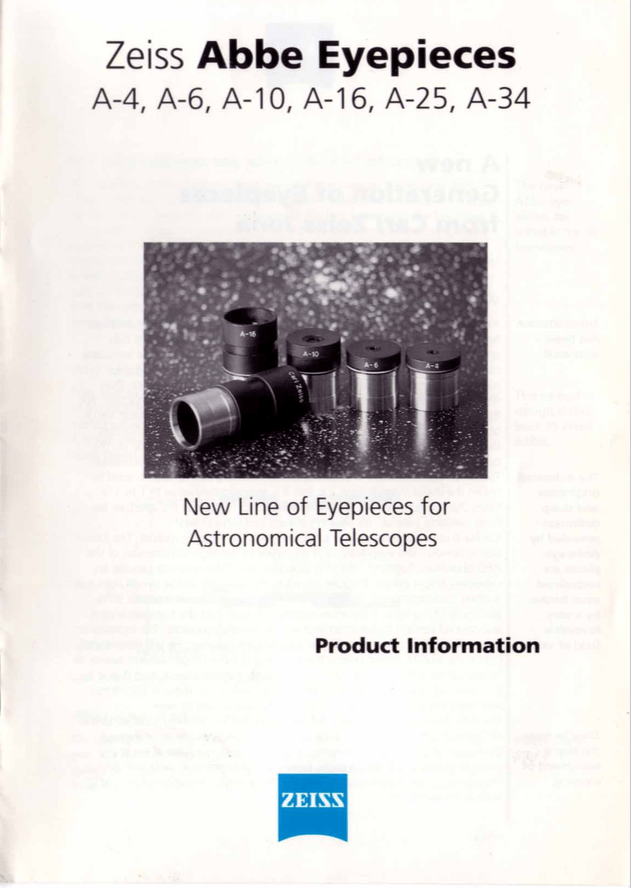 The world famous Zeiss ZAO’s!! Fabulous ep’s that most consider to be among the very best in the world. These ep’s were created with the APQ line of telescopes, but are fantastic for all scopes. Here is the original brochure…